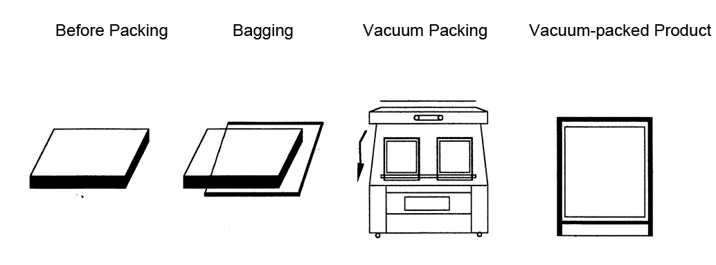 真空包装系将产品密封于薄膜袋内,并抽尽其中之空气使产品处于完全无氧之状态。能防潮、防尘、防锈及其它功能,可说是具安全作用并具备防污染的最佳包装。
